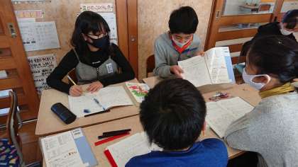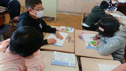 算数の授業では,比の問題を学習しました。グループで考え方を発表し合いました。