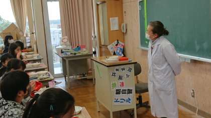 今日は,給食の時間に,戸高先生のお肉についての栄養指導がありました。お肉に含まれるビタミンの話をしっかりと聞き,残さずに食べていました。