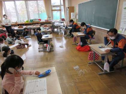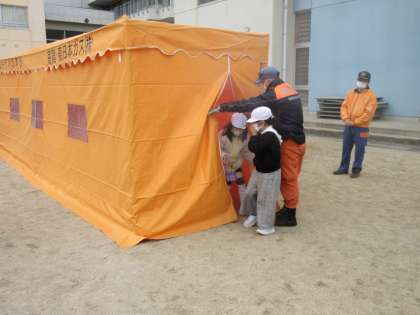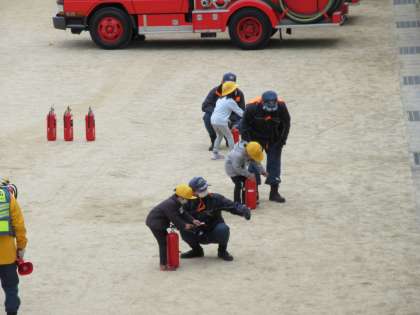 1年生は通報訓練 2年生は消火体験 3年生は煙体験をしました