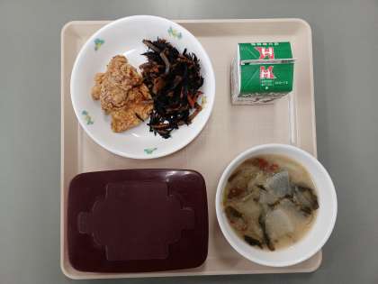 今日の献立(体みがき) 公開日 2022/12/19 更新日 2022/12/19 子どもたちの活動 12月19日(月)体みがき <献立名>ごはん 牛乳 鶏肉の唐揚げ ひじきの炒め煮 なめこ汁 毎月19日は「食育の日」です お家でも食事についてお話し合いをしてみてください。