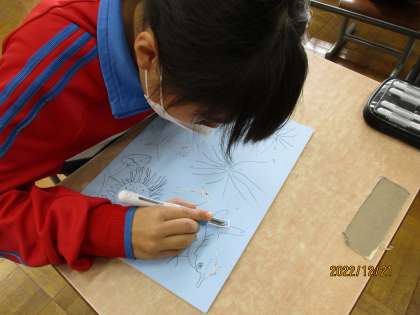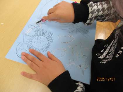 12月21日の合同学習 公開日 2022/12/21 更新日 2022/12/21 特別支援 21日の合同学習は、版画カレンダーの担当の月をそれぞれ少しずつ進めました。版木に写した線を注意深く彫りました。集中して取り組んでいました。