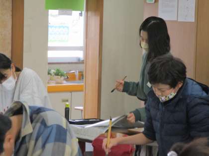 書写の時間に、書き初めを行いました。みんな一生懸命に書いていました。
