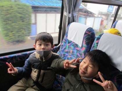 みんなでバスに乗るだけで楽しくて仕方ない子供たちです。