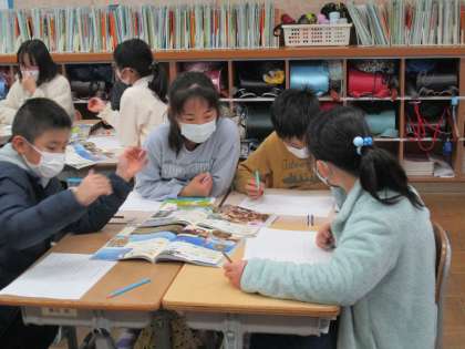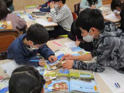 4年生 理科 公開日 2023/01/17 更新日 2023/01/17 4年生 秋から冬になって生き物の様子はどう変わったのか。教科書の写真などを見ながら変化を見つけました。グループの友達と協力しながらたくさん見つけることができました。