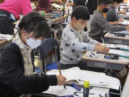 書写の時間に、書き初めを行いました。みんな真剣に書くことができました。
