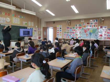 英語の学習では,相手にほしいものを尋ねる言い方を練習しています。