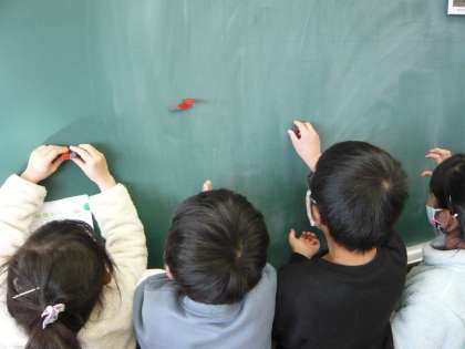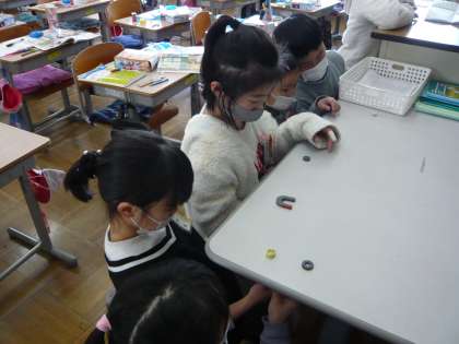 3年生 理科 公開日 2023/01/25 更新日 2023/01/25 3年生 理科の時間に、じしゃくのふしぎについて勉強しています。教室の中で、じしゃくはどこにつくのかな?じしゃく同士も、くっついたりはなれたり、くっついて変な形になったり。みんな、たくさんのふしぎを見つけることができました。