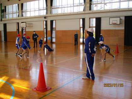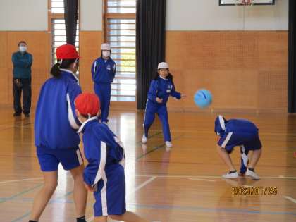 2時間目の運動の最後に、ドッジボールをやりました。ボールの投げ方やコートの中での動き方が良くなってきました。みんな明るく、盛り上がってやっていました。