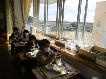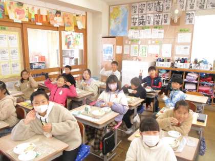 感染に気を付けながら、給食をおいしそうに食べています。 高学年に近づき、体も大きく成長してきています。