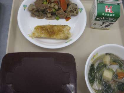 今日の献立(体みがき) 公開日 2023/01/26 更新日 2023/01/26 子どもたちの活動 1月26日(木)体みがき <献立名>ごはん 牛乳 白身魚の梅ソースかけ れんこんの甘辛炒め 味噌けんちん汁 今日は「茨城県の給食の日献立」でした。