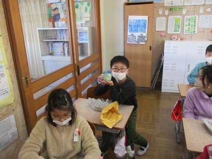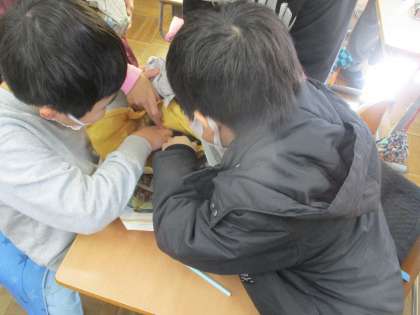 友達と作品を見せ合ったり,自分の作品をじっくりみたりなど嬉しそうな姿が印象的でした。