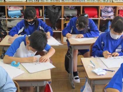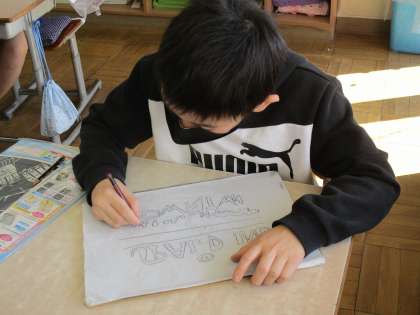 版画の下絵をはん木に写しました。トレッシングペーパーなどを使って丁寧に写しています。