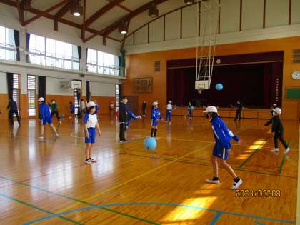 フラフープの後は、ボール投げをやりました。2人組になって、投げたり捕ったりしました。ボールの投げ方が上手になってきました。上級生が下級生に教えてあげる場面もありました。教えてもらってうれしそうでした。