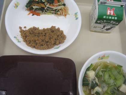 今日の献立(体みがき) 公開日 2023/02/20 更新日 2023/02/20 子どもたちの活動 2月20日(月)体みがき <献立名>麦ごはん 牛乳 ビビンバ かにかまスープ 「茨城美味しおDay」献立でした。