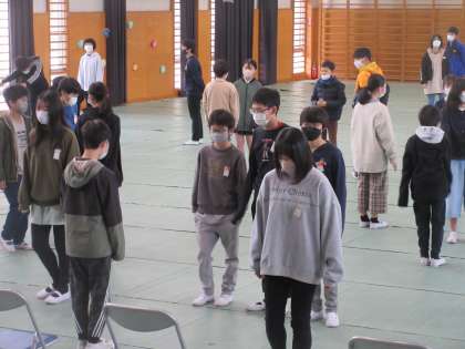 今日から卒業式の練習が始まりました。まずは返事や姿勢、礼の確認です。本番に向けて、日々頑張っていきます。