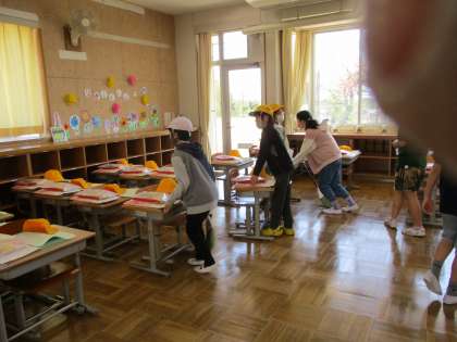5年生になったその日に、入学式の準備を行いました。みんな、一生懸命に働く姿が見られ、高学年になった自覚が芽生えたようにも感じました。