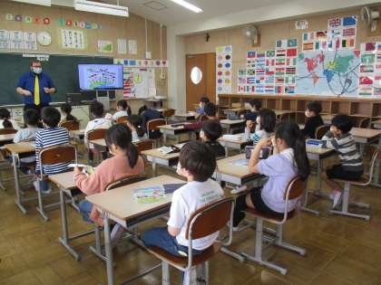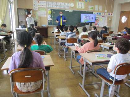 3年生の初めての英語の授業です。 熱心にALTの先生の発音をまねすることができました。
