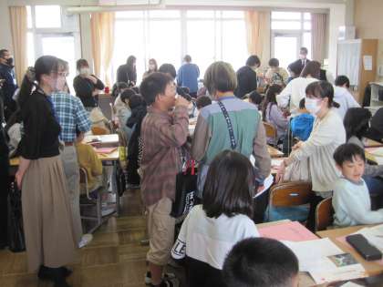 授業参観の様子(道徳:夢を実現するためには) 公開日 2023/04/24 更新日 2023/04/24 5年生 メジャーリーガ大谷翔平選手の生き方について学びました。お家の人たちにも授業に参加してもらいました。