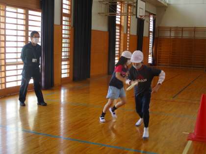 4月25日の合同学習(その2) 公開日 2023/04/26 更新日 2023/04/26 特別支援 2時間目は、運動をやりました。始めにリレーをやりました。2チームに分かれて、互いに追いかけるように走ります。どの順番で走るか相談し、みんな全力で走っていました。