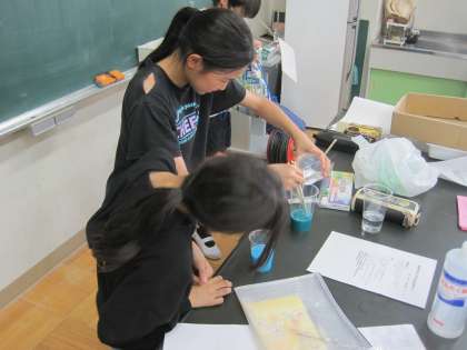 科学クラブはスライム作りです。思い思いの色を着けて作っていました。気持ちのよい感触にやみつきです。