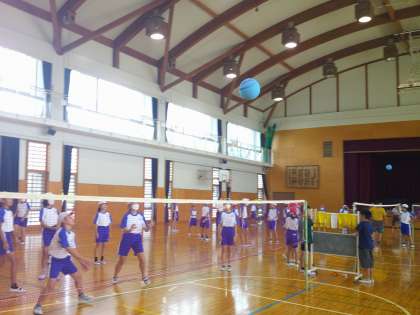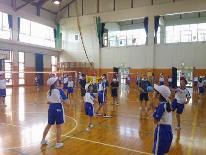 ソフトバレーボール 公開日 2023/09/27 更新日 2023/09/27 5年生 体育では、ソフトバレーボールを行っています。まだ、始めたばかりですが、どんどん上達しています。勝利の鍵は、チームワークです!