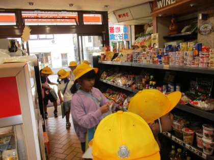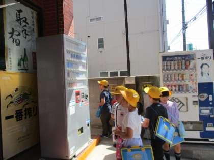町たんけんで、藤沢商店さんに伺いました。お酒や飲み物、お味噌や醤油などのふだんよく使う品物がたくさんありました。貴重なお話もたくさんいただきました。ありがとうございました。