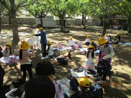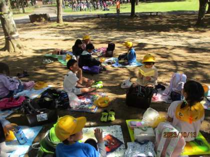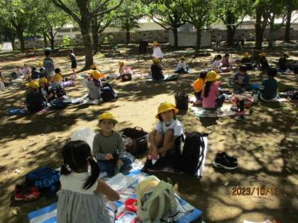 待ちに待ったお弁当の時間です。班ごとに仲良く食べました。