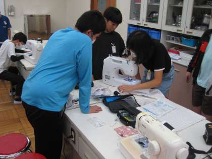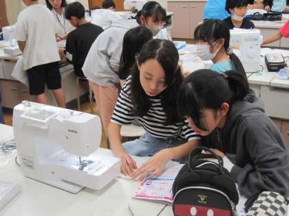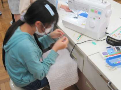 6年家庭科 ナップザックつくり 公開日 2023/10/19 更新日 2023/10/19 6年生 今、ミシンでナップザックの製作に取り組んでいます。普段使うことに慣れていないミシンに悪戦苦闘する子も多いですが、みな頑張って作業を進めています。少しずつ形になっていくことがうれしく、製作の励みになっています。