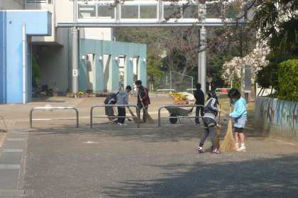 「学校みがき」委員会活動 進んで働いています。 公開日 2012/05/27 更新日 2012/05/27 子どもたちの活動 取手小では毎朝,ボランティア委員会や園芸委員会,環境委員会の子どもたちが,校門付近や昇降口の掃き掃除やプランターの草取りや水やりを一生懸命してくれています。自分たちの学校を自分たちできれいにしようと積極的に活動しています。