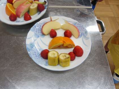 「お茶とフルーツ」と簡単なものでしたが,グループで協力して,準備から後片付けまでとても手際よく行うことができました。