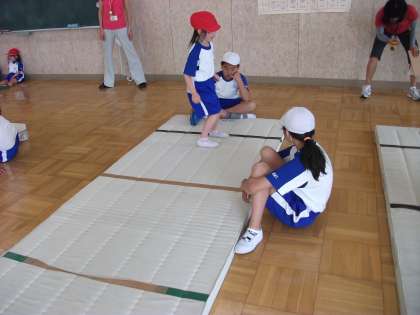 学校公開日 公開日 2012/05/31 更新日 2012/05/31 6年生 5月30日(水)1時間目から1年生や3年生の体力テストの手伝いをしました。体育館では20mシャトルランを,生活科室では,反復横跳びと上体起こしの記録を数えました。頼りになる6年生です。