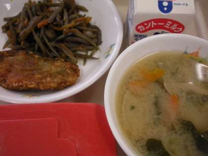 6月4日から10日までは「歯の衛生週間」です。これにちなみ,6月5日の給食は「かみかみ献立」です。「麦ごはん,牛乳,アジのから揚げ,きんぴらごぼう,具だくさんみそ汁」です。よくかんで食べるような食品や調理法にして,「かむ」ことを意識させたいという意味もあります。よくかむ食品としては,「アジ,ごぼう,にんじん,こんにゃく,しめじ,だいこん」,よくかむ調理法としては「揚げる」を取り入れています。児童は,しっかりかんで,よく食べていました。ごはんによく合うおかずです。