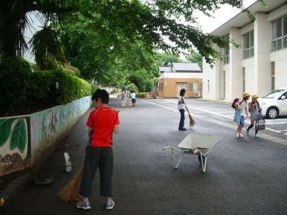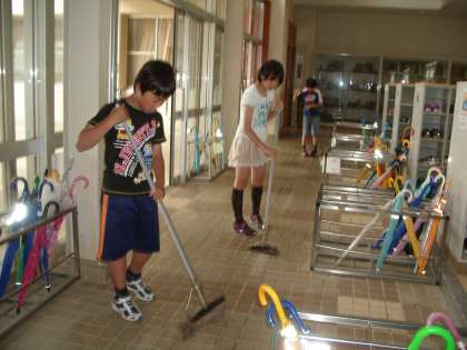 毎朝,ボランティア委員会は体育館前の掃き掃除,環境委員会は,昇降口のモップかけ,園芸委員会は草花の水掛や雑草ぬきをしてくれます。朝の忙しい中ですが,担当の先生も一緒に子どもたちと作業をします。みなさんのおかげで,さわやかな1日が始まります。職員玄関口のプランターにも夏の花が植えられます。もちろん,園芸委員会の子どもたちがお世話をしてくれます。「環境は人をつくる」といいますが,潤いのある環境で情操を豊かにしてほしいです。