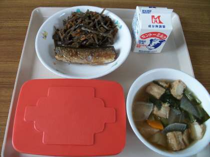 今日の献立 公開日 2013/09/24 更新日 2013/09/24 子どもたちの活動 9月24日(火) (体力みがき) <献立>麦ご飯 牛乳 さんまの塩焼き きんぴらごぼう いもの子汁 秋の代表的な味覚「さんま」です。