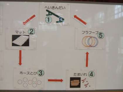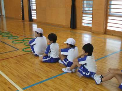 水曜日の3時間目は、体育館で合同学習をしています。グループごとに分かれ、運動をしました。きちんと並んで、ルールを守って運動をしています。子どもたちは汗をかきながら頑張りました。