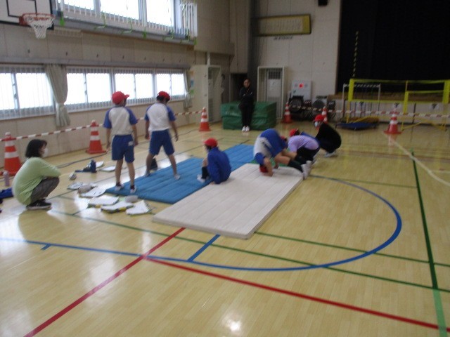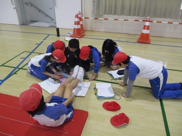 今日の体育は器械運動を中心としたマット運動の授業です。みんなで「白山オリンピック」を開くために、グループごとにできる技の組み合わせや順番やつなぎ方など、演技構成を話し合いました。「白山オリンピック」を成功させようと、話し合ったことをもとに、みんな張り切って練習に取り組みました。
