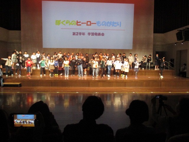 今日は、保護者の皆様をお招きして、ウエルネスプラザで学習発表会です。1年生の「サラダで元気」、2年生の「僕らのヒーロー物語」、3年生の「劇団3年生」、これまでの練習の成果を発揮して、学年に応じたすてきな表現活動を行うことができました。壇上に上がった子供たちの顔はみんなキラキラ輝いていました。保護者の皆様、参観ありがとうございました。