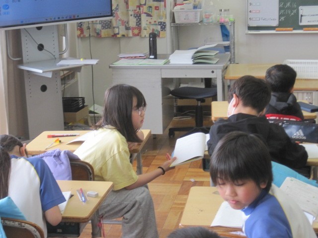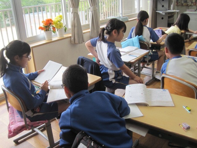 4年生の算数の最初の学習は、大きな数についてです。大きな数の表し方を練習したり友達と確認し合ったりしながら学んだことを身に付けていきます。桁数が多いので大変ですが、集中して取り組んでいました。