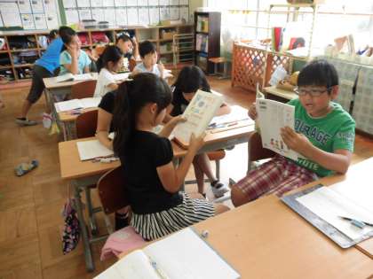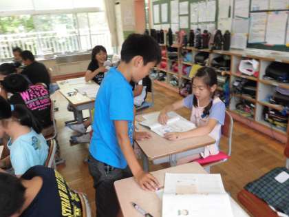 国語の学習で水族館の案内係になってみるという活動を行いました。お客さんの思いを考えて上手に案内できたのでしょうか。