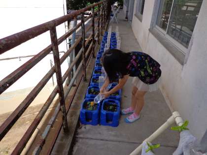 6月 2年 ミニトマトの水やり