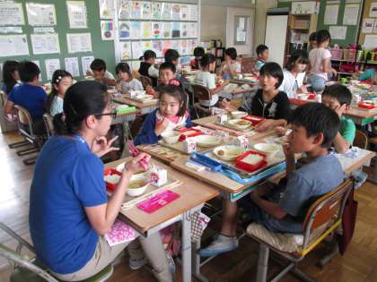 また5年1組の子供たちはイヴ先生と一緒に給食を食べました。笑顔いっぱいの時間でした。