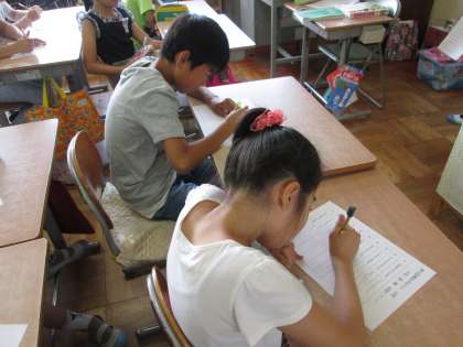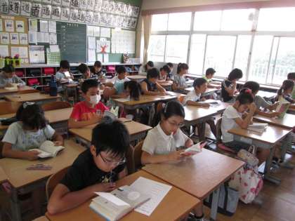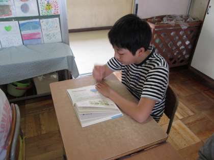 登校後の朝の時間。今週末に漢字力テストがあるので,その練習に真面目に取り組んでいます。漢字練習のあと,読書をし,落ち着いた生活をしています。