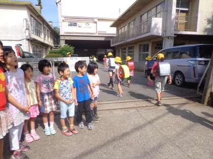 初めてのあいさつ運動をしました。恥ずかしがらずに大きな声であいさつをすることができました。6年生と一緒に活動できて嬉しそうでした。