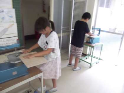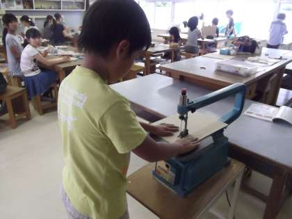 電動のこぎりを使うのも2回目。使い方にもすっかり慣れ,安全に使っている子供たち。作品の形ができてきました。作品の仕上がりが楽しみです。