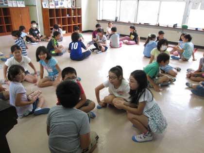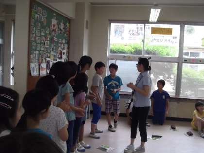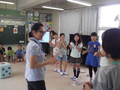 6月16日(火)イヴ先生との外国語活動,テーマは「果物・動物」。果物や動物を表すたくさんの英語にゲームなどを通して,慣れ親しみ,生き生きと活動していた5年生です。