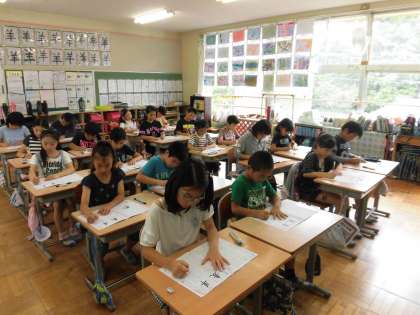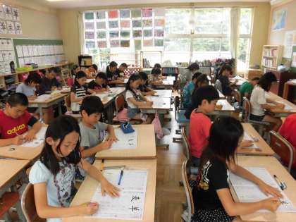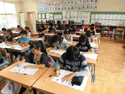 今回の書写は硬筆です。姿勢に気をつけて一字一字丁寧に書いています。