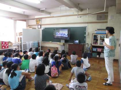 11月の感謝集会で行う「利根川の詩」の練習が始まりました。ビデオで,先輩達の発表を観ました。やる気いっぱいの5年生です。