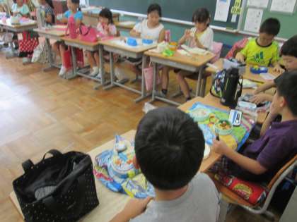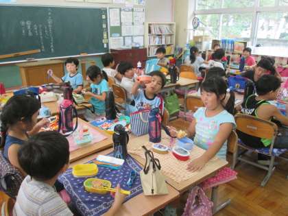 愛情たっぷりのお弁当を,笑顔で食べていました。