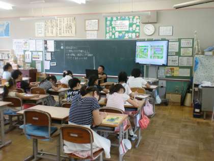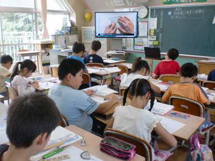 2学期の算数の最初の単元は「垂直と平行」です。デジタル教科書を活用して学習を進めています。絵地図の中で見つけた垂直や平行にペン機能を使って印を付けたり,垂直・平行のかき方の動画を見て同じようにかいたりしています。子供達にもわかりやすいようで好評です。