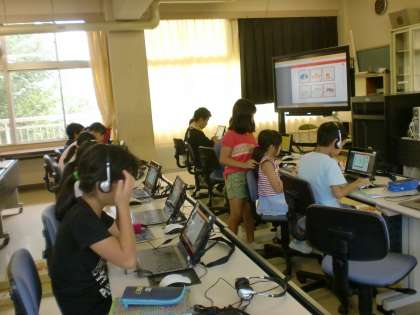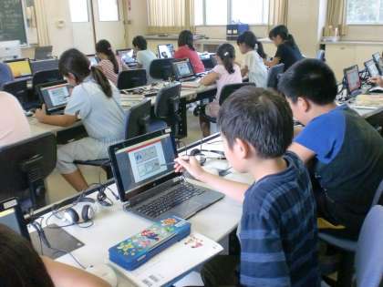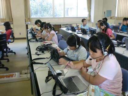 コンピュータ室で新しいパソコンを使って学習しました。一人1台なので,自分のペースで学習できます。相談もしなくてすむのでとても静かです。この日は国語のことわざを学習しました。時間が余った子供達は,タッチペンで漢字の書き取りを練習しました。書き順の動画が出たり,正解すると○が出たりして,楽しく学習できました。